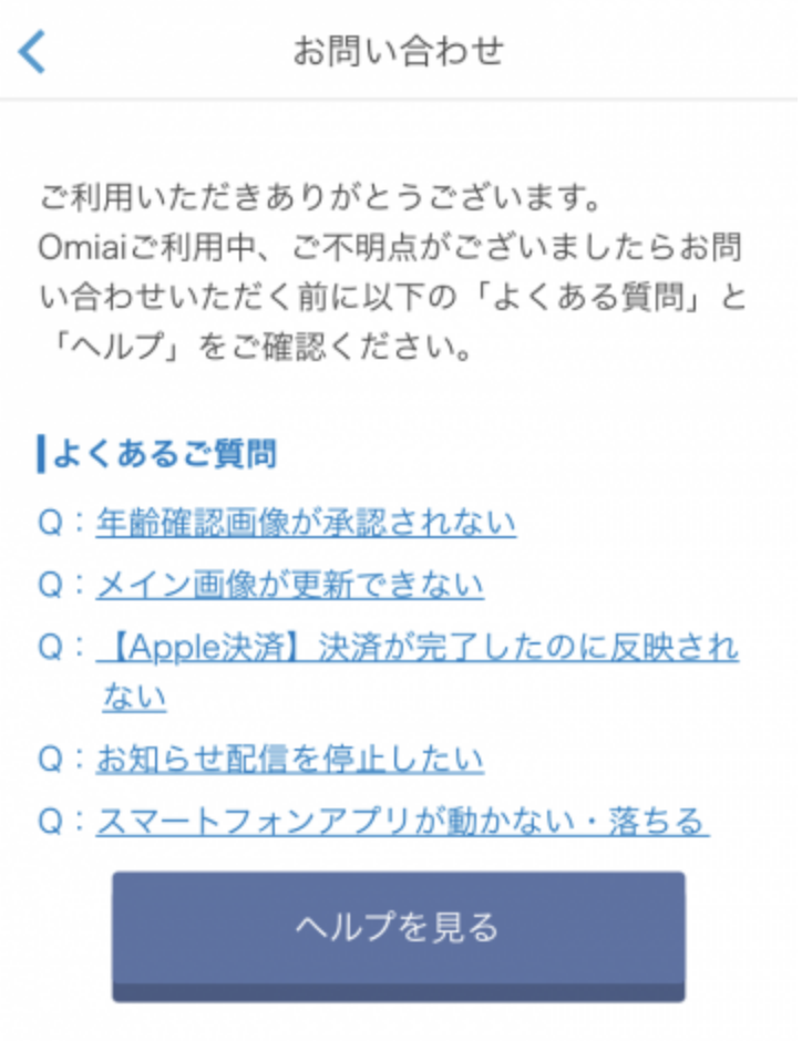 次にお問い合わせという項目がでてくるのでタップしましょう。
