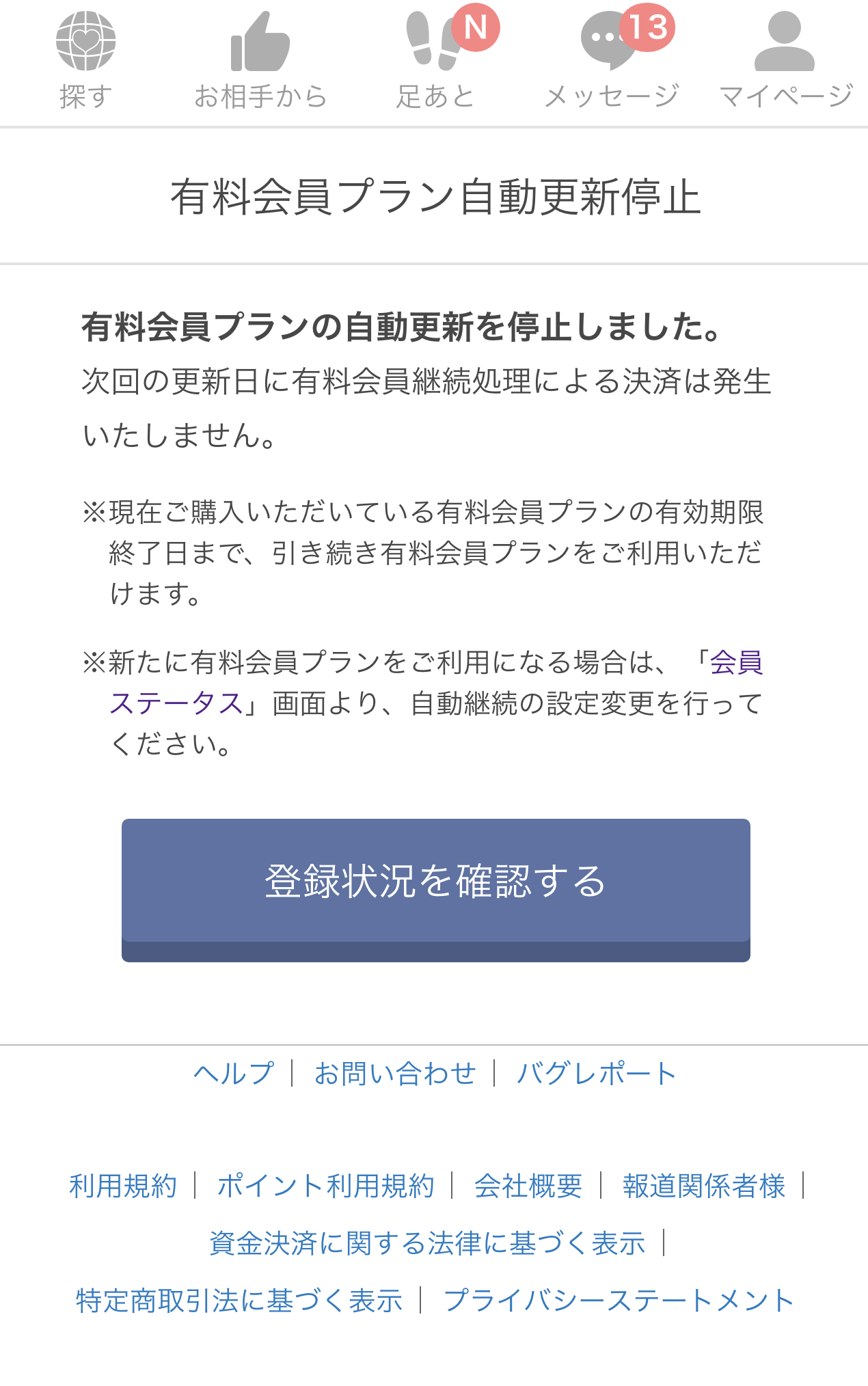 有料会員の場合は自動更新の停止