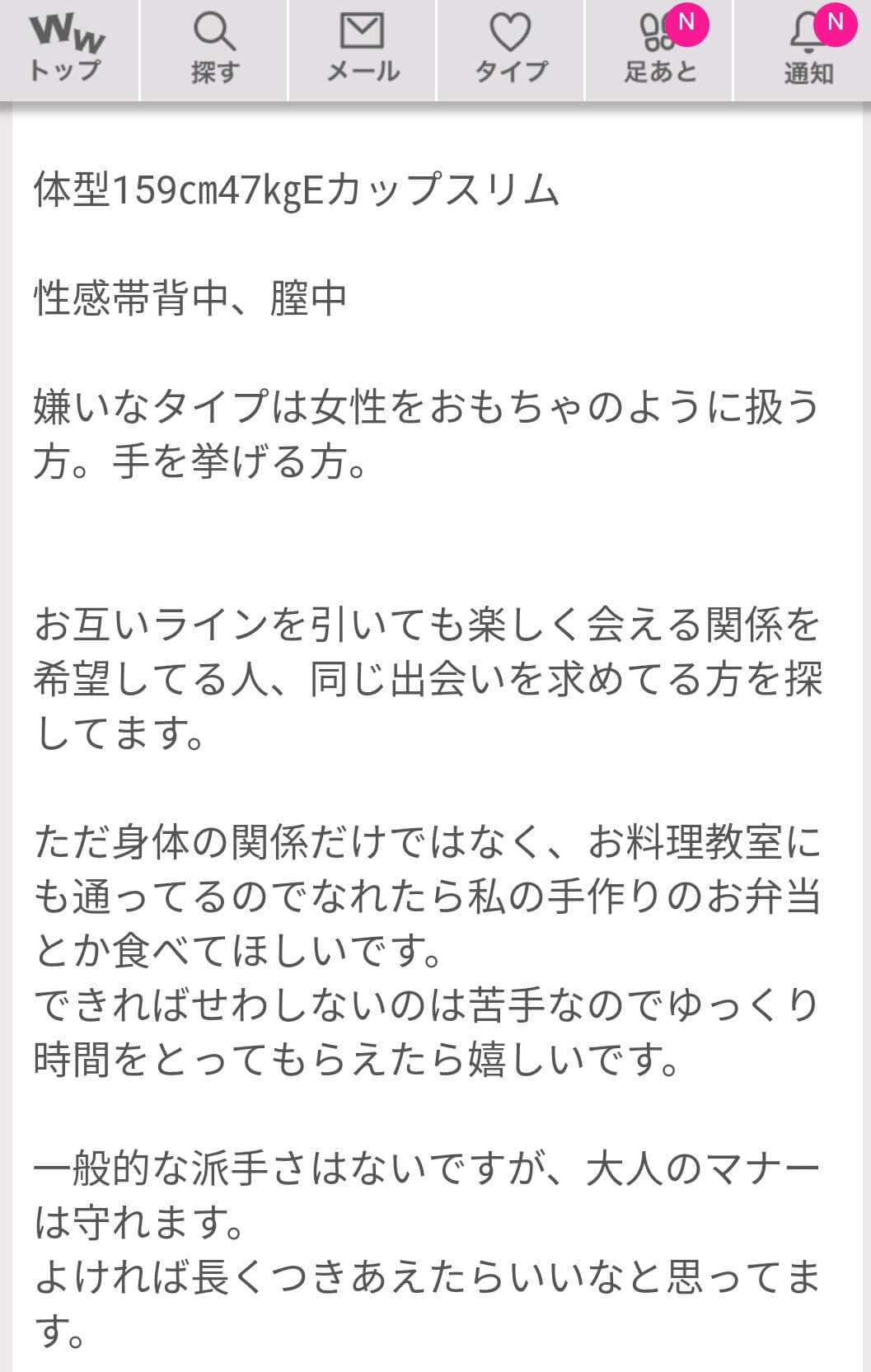 ここまで揃うとパーフェクト達成、役満です!!ついでに家庭的な性格のアピールも男性受け狙いでしょうか。ここまで露骨なプロフィールなら判別は簡単ですね!